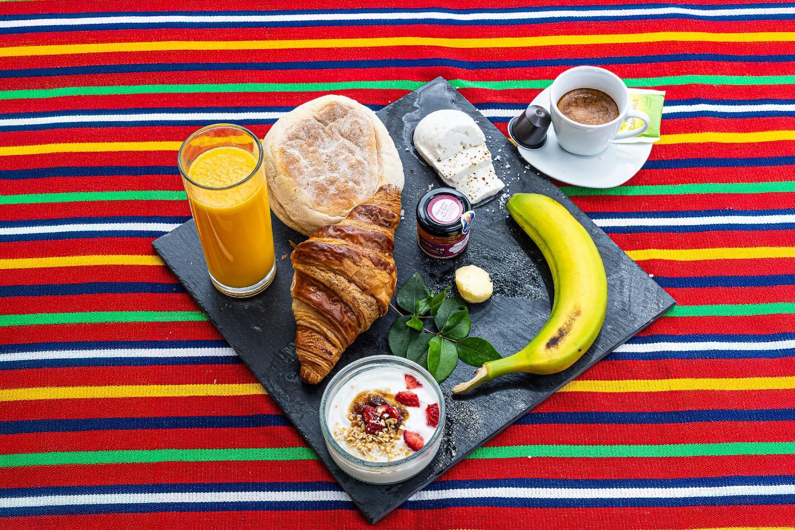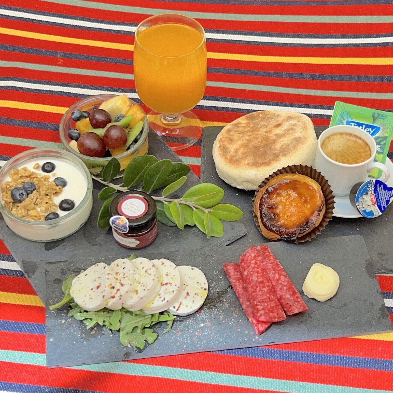 ✔ Local Soul – Featuring a delicious Pastel de Nata (custard cake), Bolo do caco (Madeira’s iconic sweet potato bread), Salami, artisanal jams from Fábrica do Ribeiro Seco, and seasoned fresh Santo Queijo white cheese – all sourced from neighborhood producers.